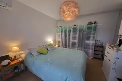 Il possède une cuisine américaine avec un grand plan de travail et nombreux placards, un salon de plus de 27 m2 avec un balcon carrelé et store banne, une vue dégagée sur l'observatoire et le Mont Alban, trois chambres donnant sur un extérieur carrelé également, une salle d'eau spacieuse avec fenêtre et double vasque, des toilettes suspendues indépendante.